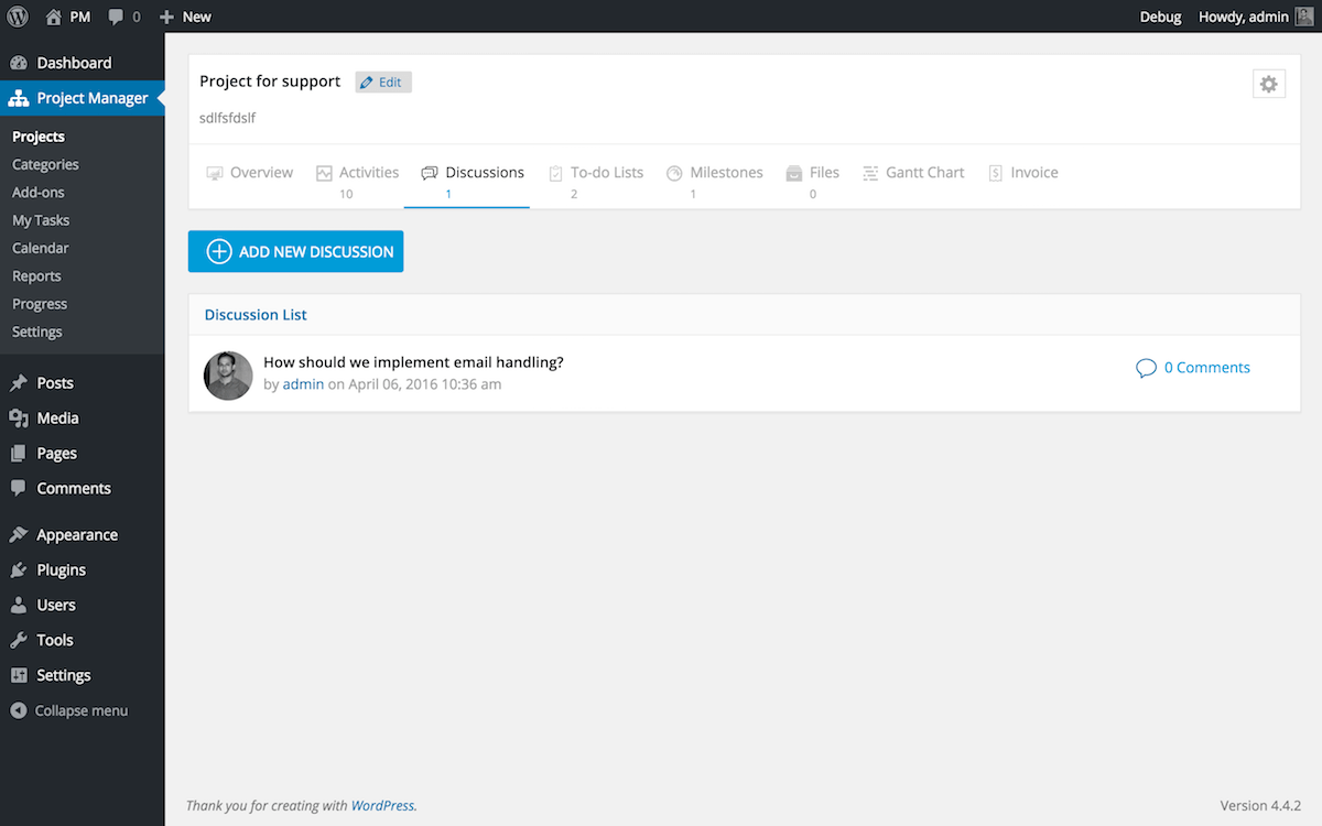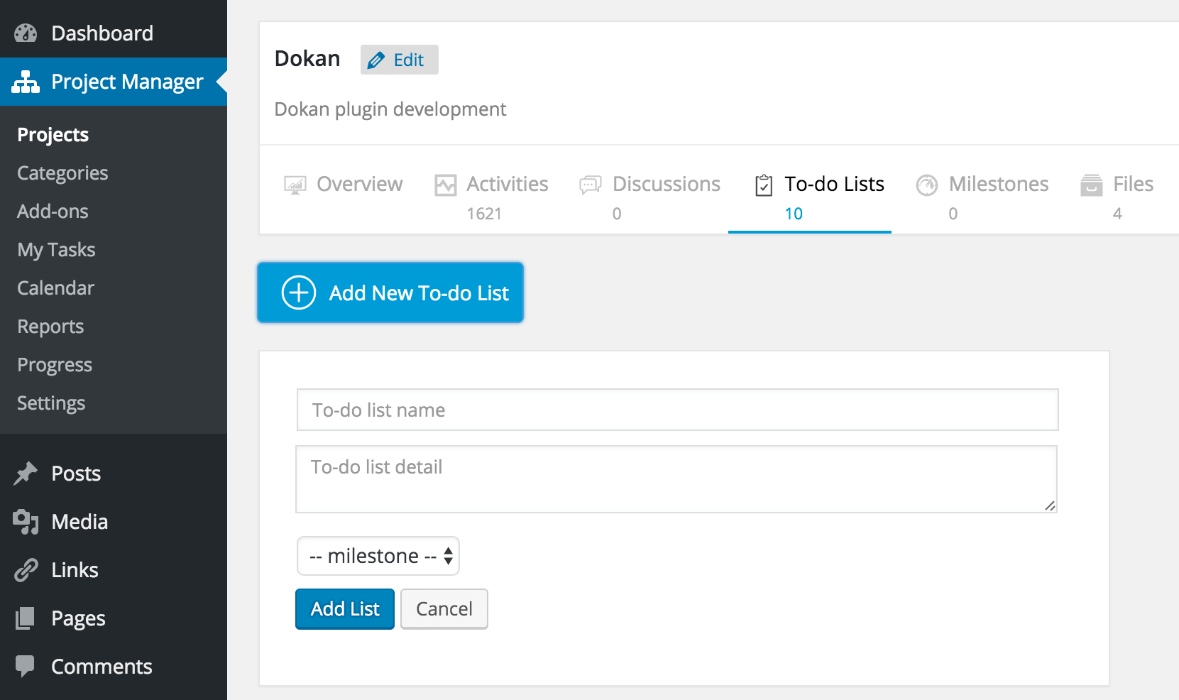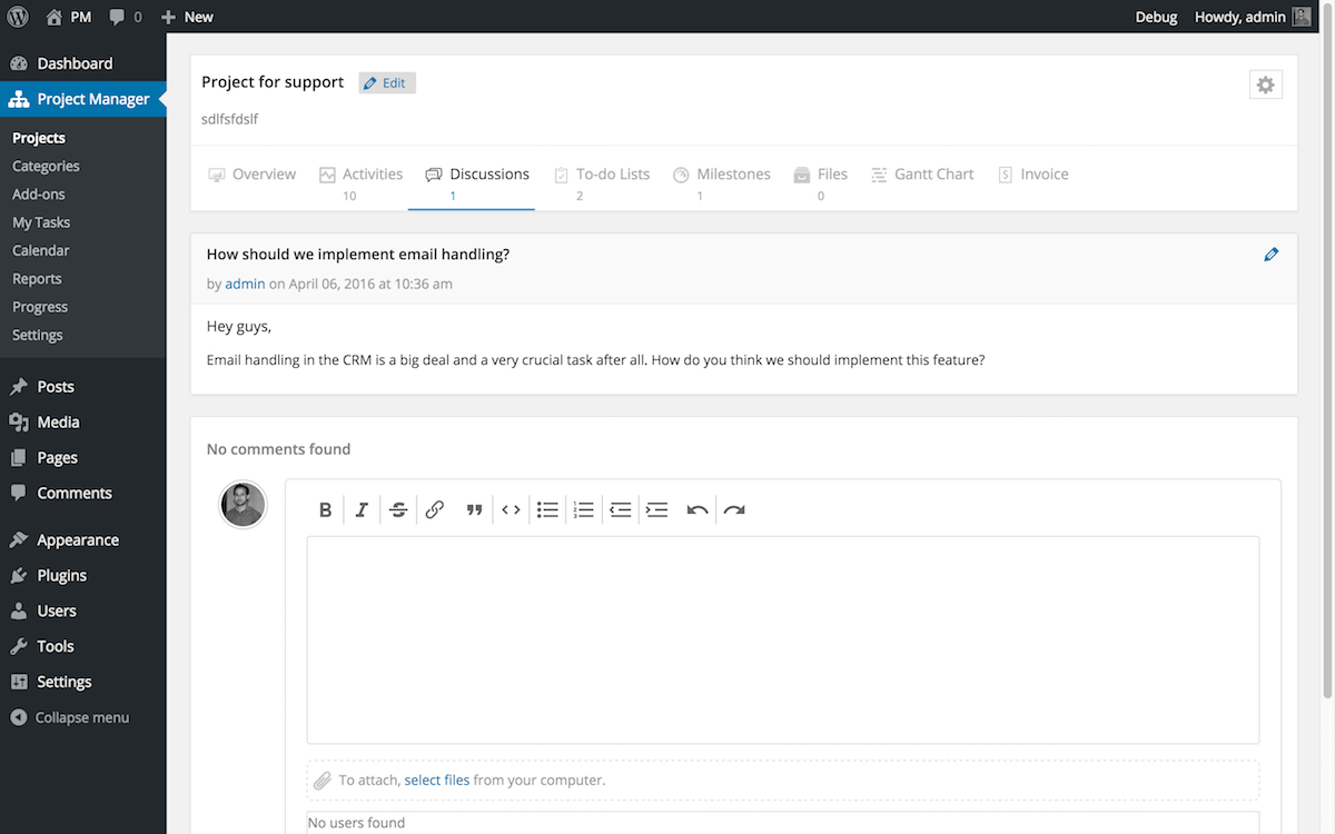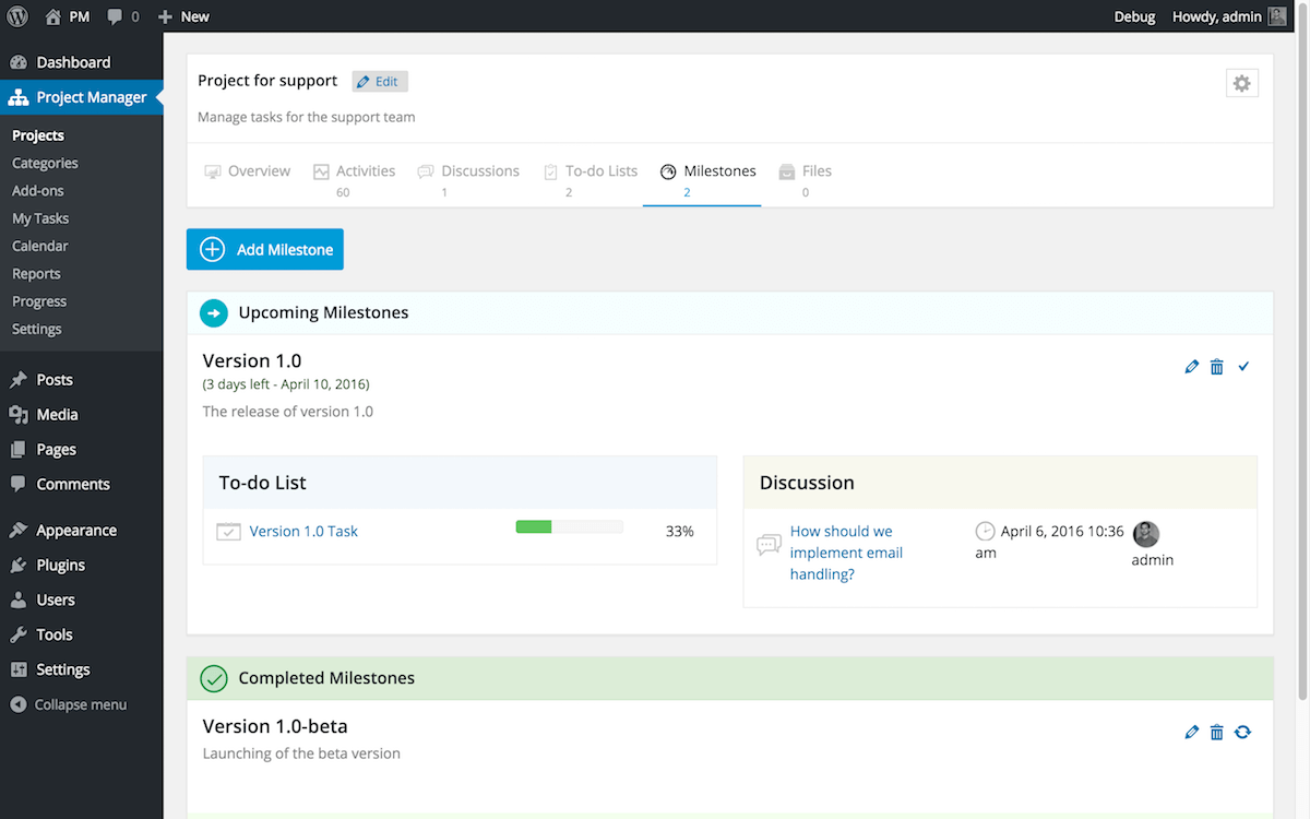 The free version of WP Project Manager offers core task manager and project management essentials to get you started. Take a look at them below: